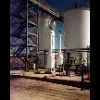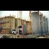 Hazardous waste fuel blending facilities at cement plants are frequently similar in basic configuration to this one. There are three 40,000 gallon blending tanks for receiving bulk tankers from off-site. Directly adjacent to the blending tanks is a fully contained truck bay and a laboratory for testing each shipment of fuel as it arrives. Once a blend tank is full it is sampled and tested again to insure the final blend meets all specifications for use as fuel. It is then transferred to a larger, 150,000 gallon tank which is utilized to provide the consistent quality fuel on a continuous basis to the kiln.>