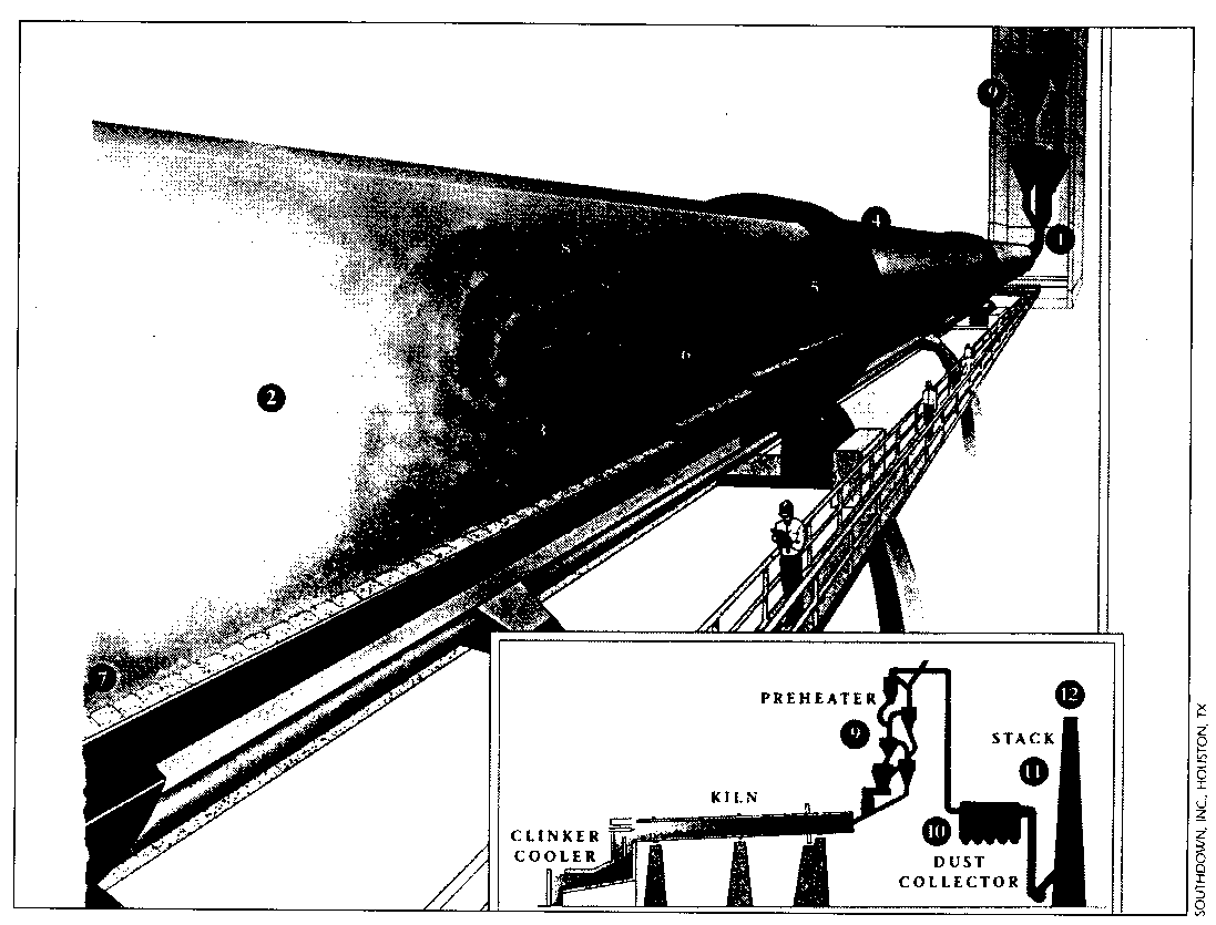 A medium size rotary cement kiln has an enormous appetite for energy, consuming up to 300 million Btu/h (Figure 1). Holnam's kiln in Clarksville, MO, is the largest in the world, with a 25ft. (7.6m) diameter kiln 760 ft. (231m) long. When the plant was built in the 1960's, the kiln was the largest piece of moving equipment ever constructed.